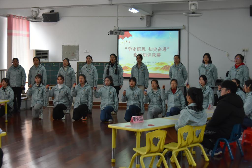 本站讯(鲲鹏幼儿园党支部 徐艳梅 )为深入学习贯彻党的十九届六中全会精神,营造浓厚的学党史氛围,进一步丰富党史学习教育形式,1月7日,鲲鹏幼儿园党支部举行了“学史悟思 知史奋进”党史知识竞赛活动,参与本次竞赛的有小、中、大班年级推选的6支代表队共计18名党员及青年团员教师。