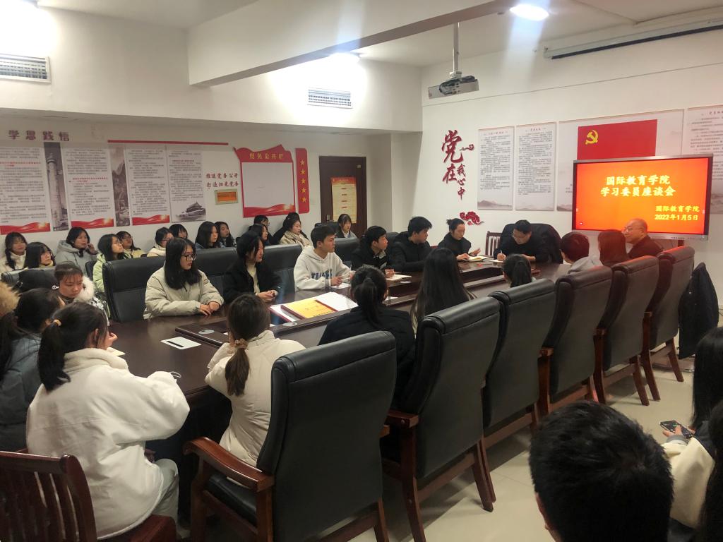 本站讯(国际教育学院 颜灵仪)为更深入掌握我院学生学习效果,促进教学质量稳步提升,国际教育学院于2022年1月5日晚7:00在科技综合楼401召开2021-2022学年第一学期学习委员座谈会,国际教育学院副院长肖勇,小学英语教育专业负责人李强,教务科科长江萍,教务干事颜灵仪及所有在校班级学习委员和学生代表参加会议。