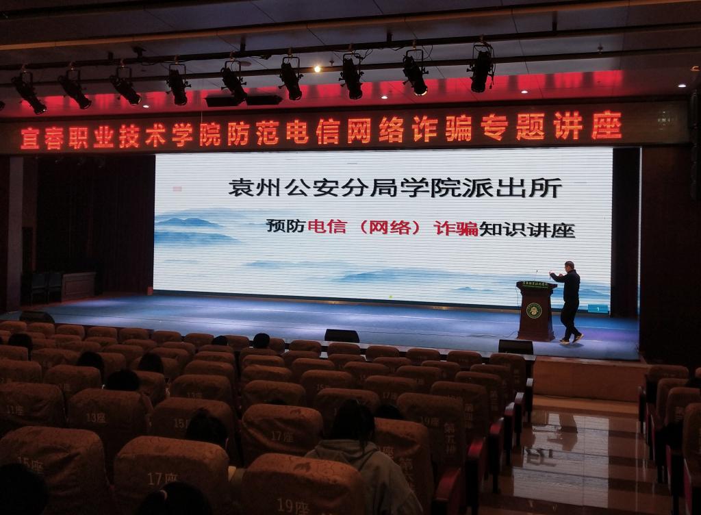 针对各种诈骗伎俩层出不穷,并且转向网络化信息化的特点,宜春市公安局袁州分局学院派出所的陈警官利用网络APP视频,进行了详细的讲解,并结合现实生活中的骗局案例、手段、特点及危害,警示大家提高法律意识和法制观念,坚决杜绝加入传销组织,在场同学也纷纷表示,遇到诈骗后将立即向公安机关报案,用法律武器维护自身权益。陈警官还以播放短视频的方式向大家介绍了电信诈骗的内涵,通过讲解当今流行的诈骗手段,提醒同学们要时刻保持警惕,不轻信可疑电话与短信,不泄露个人信息,牢记防范电信诈骗相关知识。