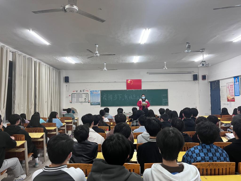 会上,辅导员(班主任)带领同学们学习《本轮奥密克戎疫情15问》《疫情防控“十倡议”》《学生安全温馨提醒(戴口罩、拆快递要求)》以及《疫情防控22种违法违规行为及法律后果》等,要求同学们做好自身疫情防控的第一责任人。接着,辅导员(班主任)与同学们一起讨论“疫情当下,我该怎么做”,大家你一言我一言,气氛非常热烈。