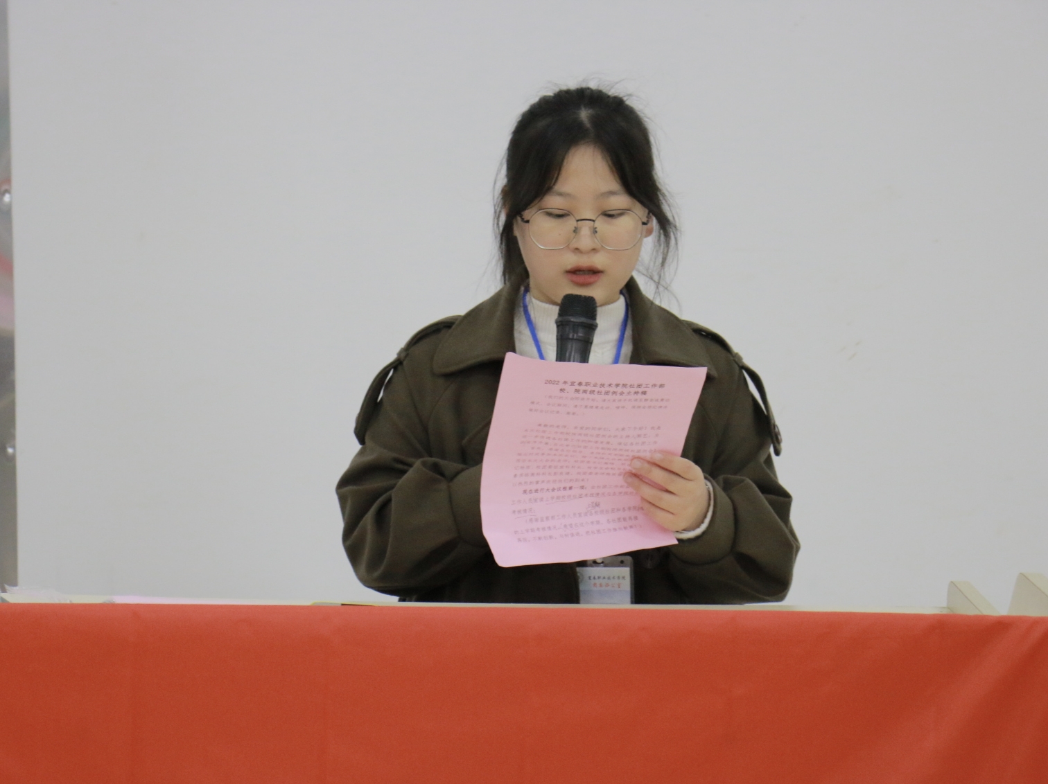 随后,社团工作部负责人周红对上学期社团工作做出总结,她认为各社团成员应坚定方向,明确目标,不断开拓创新,进一步推动社团的建设与发展。校学生会社团专职主席黄聂甜结合社团工作的实际需求对本学期工作作出展望,她表示,应不断提升社团的规范化、制度化水平,探索新形势下的社团发展道路,并通过打造有特色、有质量的品牌活动,推动社团特色发展、助力建设文明校园,在新学期展现出学生社团的蓬勃气象和靓丽风采。