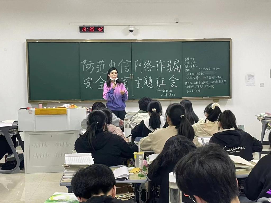 班会过程中,辅导员们抽丝剥茧,层层深入,结合当前电信网络诈骗频发、高发的典型案例,从诈骗的手段、特点、形式、危害及有效防范措施等内容组织同学们进行学习。同时,各班还通过观看反诈视频、开展主题讨论、关注网警类公众号等方式引导学生深刻认识电信网络诈骗的危害,帮助学生在互动中增长知识,在感悟体会中提升认知,自觉抵制电信网络诈骗。