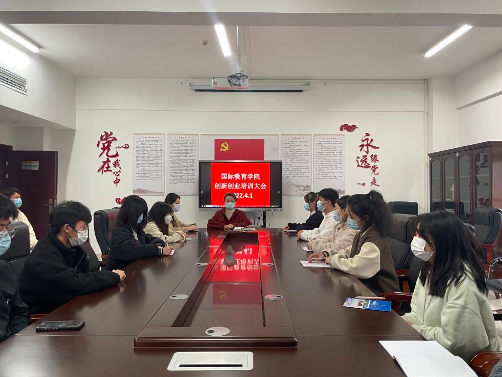 本站讯(国际教育学院 金岩)为更好地响应和落实国家“创新创业”政策,加强培育创新创业人才,充分调动学生的积极性,激发同学们创新创业的潜能,国际教育学院于4月1日下午5点30分在科技综合楼401召开创新创业培训会。会议由国际教育学院辅导员金岩主持,国际教育学院各班班长参加。