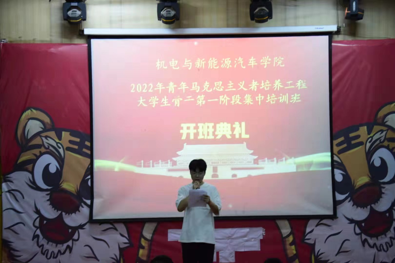 本站讯(机电与新能源汽车学院 周勤 王宇浩)4月7日下午,机电与新能源汽车学院2022年“青年马克思主义者培养工程培训班”(以下简称青马班)开班仪式在老科技综合楼一楼阶梯教室举行。出席本次开班仪式的领导及老师有机电与新能源汽车学院党总支书记赵琰、院党总支副书记宋秋奴、马克思主义学院曾骏副教授、机电与新能源汽车学院教师熊逸伟,开班典礼由我院团总支书记周勤主持,此次议程共六项。