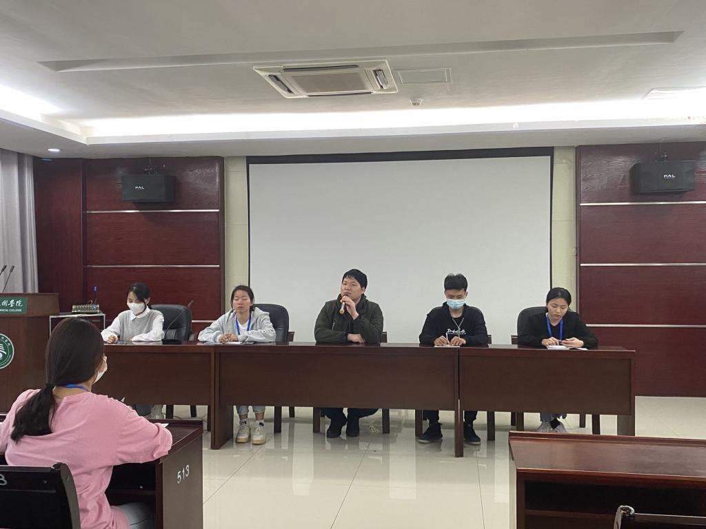 会议共分为两项。会议第一项,由院团总支书记赖朝阳对学生会近一年来的工作进行系统性总结,并提出一些建设性的意见。他指出:“学生会工作完成度较高,效果尚可,值得鼓励,但结合当前封校情况,学生会不能仅仅完成上传下达工作,还需要有创新意识,多组织趣味性团体活动,让同学们的校园生活更加丰富”。会议第二项,由主席团干部对工作过程中存在的问题进行述职报告。首先,马彩云提出早检问题,指出有学生会干事检查时不注重自身仪容仪表,检查工作不认真等问题。其次,戴玮珑提出学生会干事工作积极性不高,出现了看学时做事的不好现象,勉励各位干事能够努力做好自己本职工作。江一帆则要求每位干事都能够按时进行学习强国。最后由杨依婷总结。