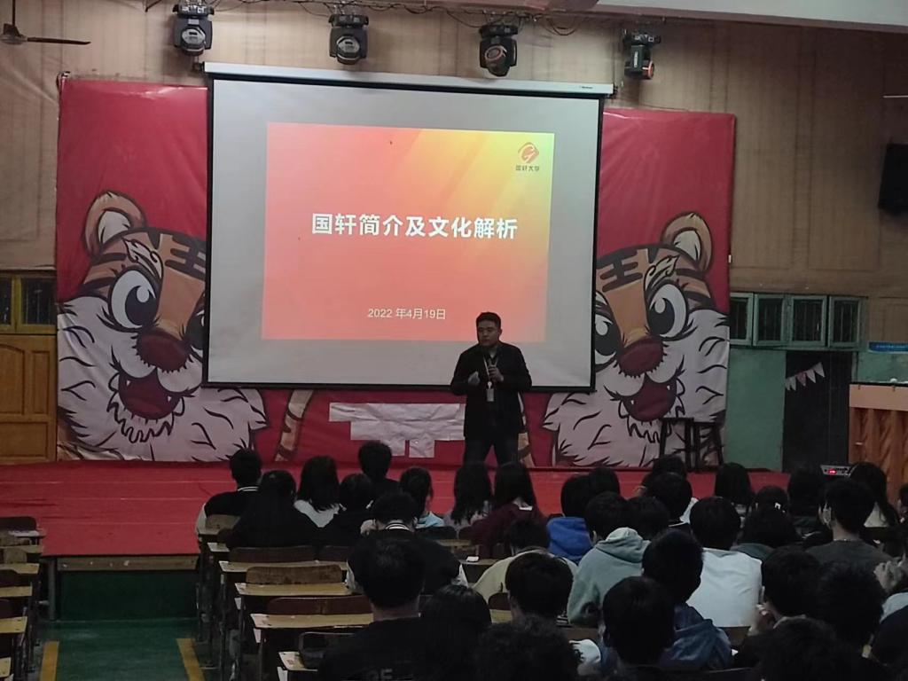 国轩高科集团的周赏经理分别从“认识文化、认识企业文化、为什么要做企业文化、需要何种现代企业文化”等四个方面进行了介绍和讲解,并结合具体案例重点阐述了企业文化的核心内涵及深远意义,引导学生树立正确文化观,为以后的就业创业做好充分准备。讲座期间学生们认真听讲,提问互动环节,在场学生踊跃发言,与讲师热情互动。本次讲座在丰富学生们的课外知识的同时,也拓展了学生的知识层次与领域,取得了良好效果。