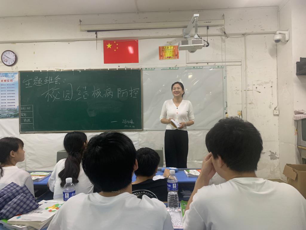 班会上,各班班主任组织同学观看关于肺结核防治的视频,通过PPT讲授,让学生了解什么是肺结核、肺结核症状以及怎样治疗和预防肺结核,生动形象的画面让学生一目了然,学生很快了解了肺结核的来源与特点。在“肺结核的诊断方法”中,同学们学会了如何减少患病的风险,保护自身健康。