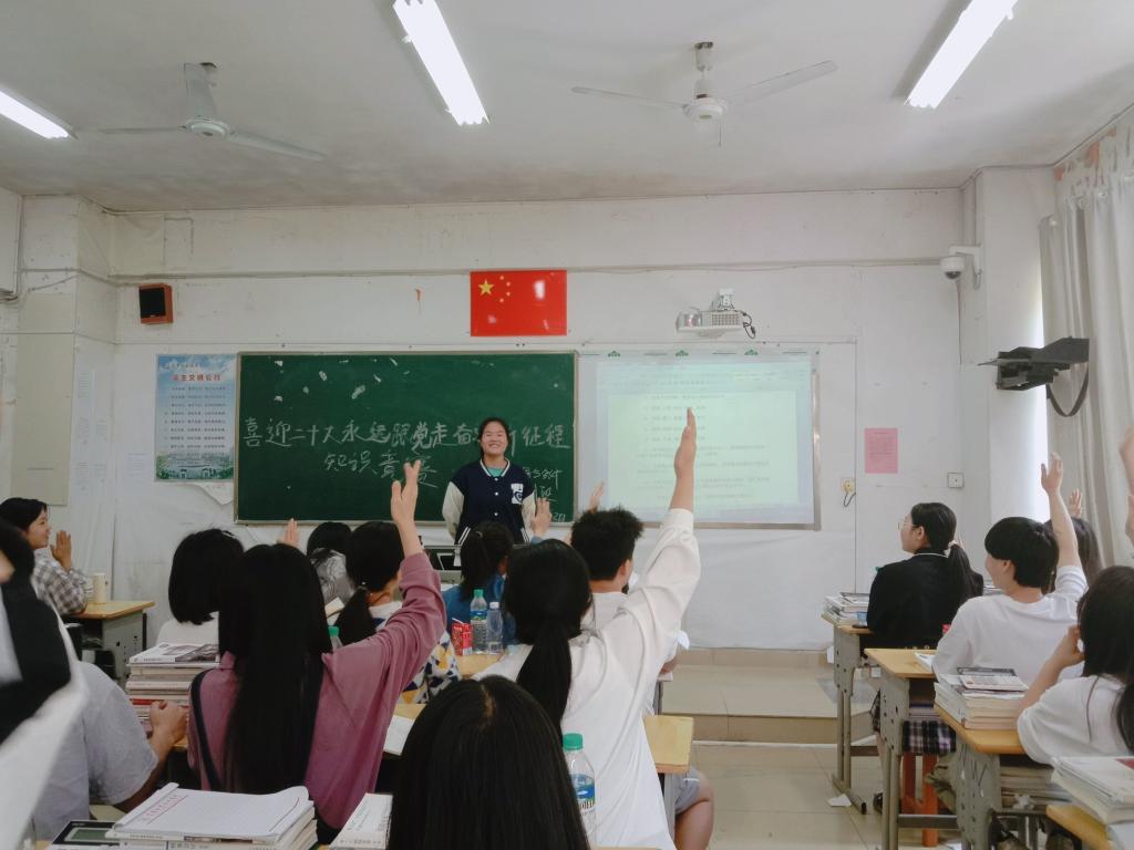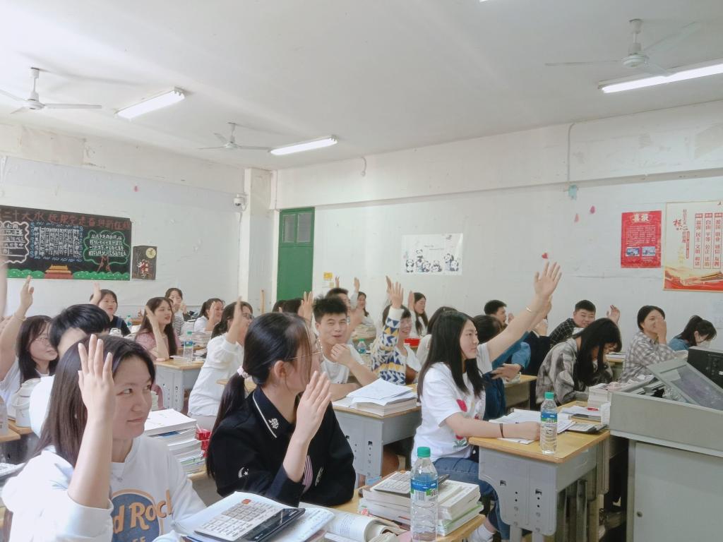 本次竞赛分为四个环节,分别为选择题、小组必答题、抢答题和互动题。首先,各班均有序开展选择题答题阶段,每组选手5道题,每题限时15秒,每组派一名成员回答问题。紧接着开始小组必答题,每组选手有2道必答题,每题限时60秒。每组派一名成员回答问题,否则取消此次答题时机,各小组同学均认真答题,不错过任何答题的机会。最后的抢答题和互动题需要每队选手在15秒钟内做出答复,班上同学积极举手参与抢答,你追我赶,一步步将现场气氛推向高潮。