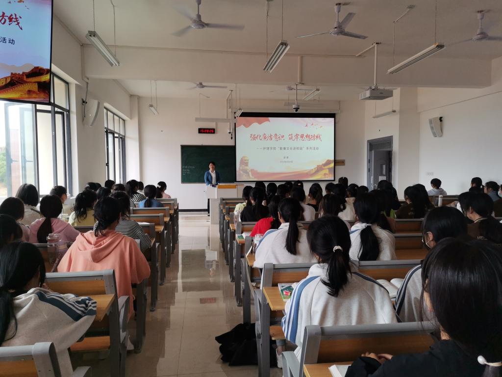 本站讯(护理学院 曲晴 刘明健)为进一步弘扬主旋律,增强学生廉洁自律意识,营造诚信守法、积极向上的校园氛围,护理学院近日在和济楼404教室开展“强化廉洁意识 筑牢思想防线”专题教育课。课程由党总支书记胡蓉主讲,学生代表120余人参加。