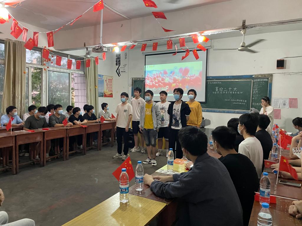 本次活动通过形式多样的节目与主持人有条不紊的介绍下顺利开展。活动开始,以播放视频的形式让同学们观看了习近平总书记对于青年的寄语,视频结束主持人向同学们提出了十个问题;接着由王勇前等同学带来精彩的合唱《少年中国说》,之后由邱志诚、刘振新、宋智同学带来了扣人心弦的抗疫故事会,紧接着是易海峰、曾立棋同学给大家带来了激情澎湃的朗诵《年轻人·我想对你说》,最后在昂扬的团歌声中结束了此次团日活动。