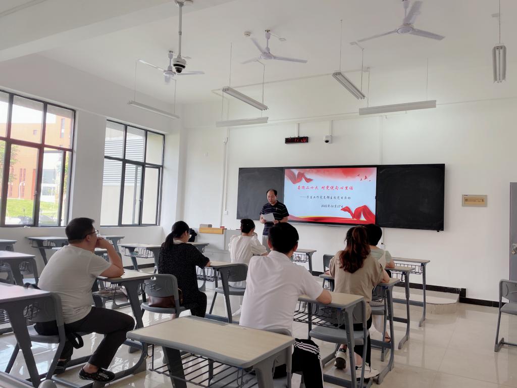 经前期精心策划,本次主题党日活动分为四个环节,“政治学习强信念、生日贺卡送寄语、重温誓词忆初心、对党说句心里话”。三位支部书记首先带领党员们学习了易炼红主持深入学习贯彻习近平总书记视察江西重要讲话精神座谈会暨江西省委理论学习中心组(扩大)集体学习会时讲话以及叶建春在江西中医药大学作的宣讲和形势报告。随后,支部书记为上半年过政治生日的党员送上贺卡及寄语,充满仪式感的政治生日让党员们感受到了来自“家”的温暖关怀。接着,党员们举起右拳,重读入党誓词,铿锵誓言,字字提醒着每个人不忘初心、牢记使命。最后,在二十大即将到来之际,大家纷纷对党说出了自己的心里话。谢璟老师说道,“我有两个生日,一个是户口本上的生日,另一个是‘政治生日’,也就是我的入党时间。这两个生日对于我来说同等重要,都深深镌刻在我的生命里,共产党员的荣光始终激励着我。”