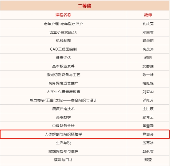 本站讯(医学基础部 尹史帝 邓小珍)为贯彻落实《国家职业教育改革实施方案》,落实《职业教育提质培优行动计划(2020—2023年)》,促进职业院校在线精品课程建设与应用,创新发展线上线下相结合的教学模式,历时一年多的超星职业院校“学银杯”星级精品在线课程评选活动圆满结束,伟德官网《人体解剖与组织胚胎学》荣获高职组二等奖。