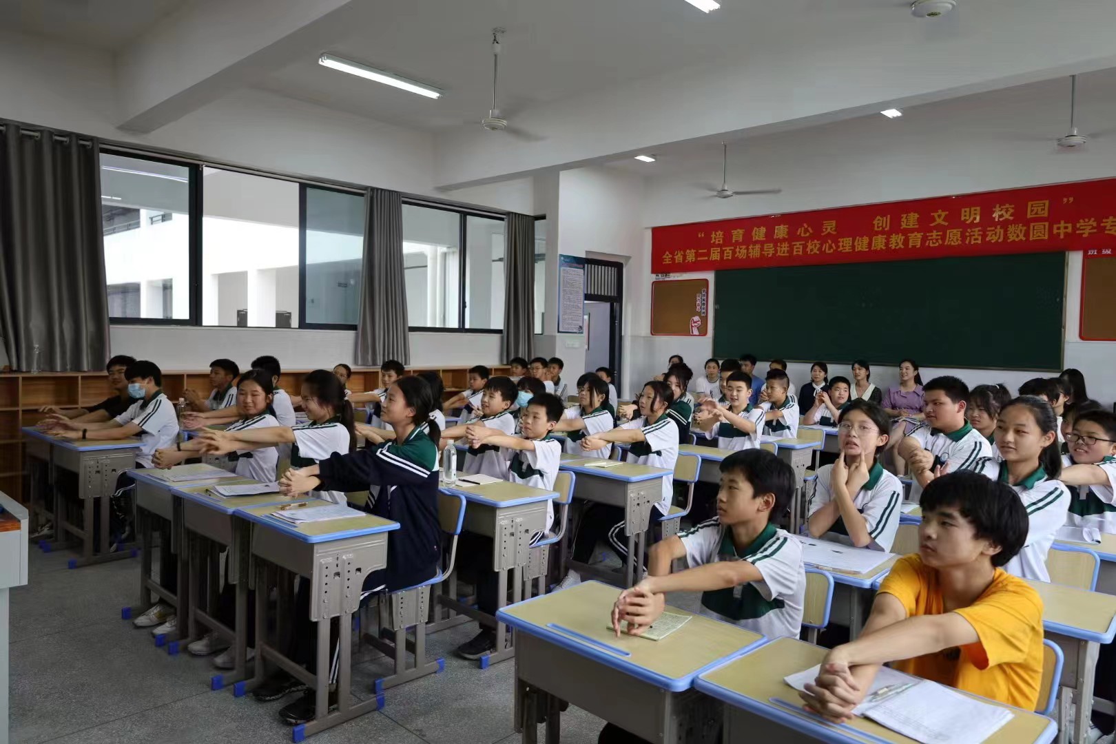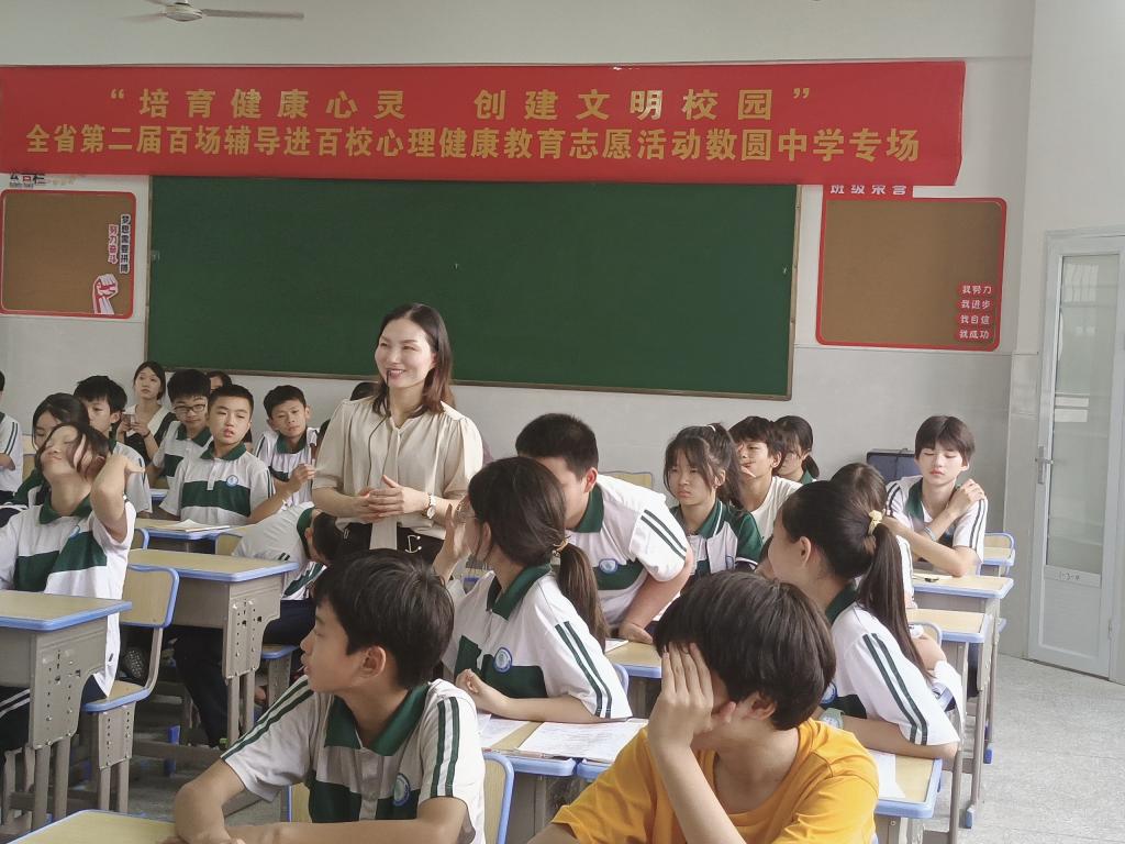 本站讯(学工处 李兵兵)为深入学习贯彻习近平新时代中国特色社会主义思想,贯彻落实省第十五次党代会有关精神,进一步加强我省青少年心理健康教育,深入推进文明校园建设,有针对性做好青少年心理疏导、共同关注青少年的健康成长,省文明办、省教育厅、省青少年心理健康教育辅导中心在全省高校遴选一批优秀心理健康辅导教师,深入开展第二届“百场辅导进百校”(“216场辅导进216所学校”)心理健康教育志愿实践活动。近日,实践活动走进宜春市袁州区数圆中学。