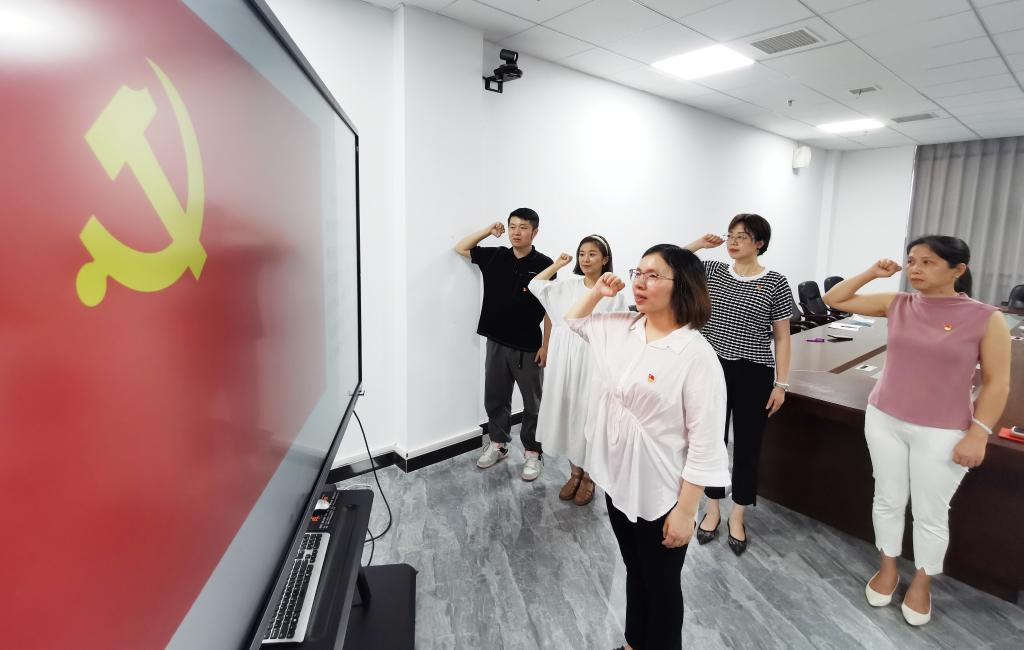本站讯(机关第三党支部 陈畅)7月1日,机关第三党支部在天工楼第一会议室开展主题党日活动,活动由支部书记吴霞主持。