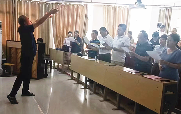 本站讯(离退休人员管理处 李艳萍)9月3日上午,伟德官网职友合唱艺术团成立暨开班仪式在实训大楼414阶梯教室举行,校离退休人员管理处贺忠处长及全体职友合唱艺术团60余名合唱爱好者参会。