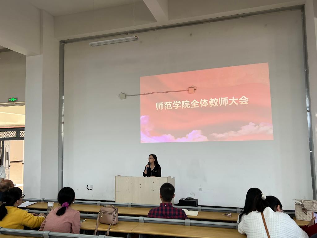 最后,师范学院党总支书记邹晓英同志强调,学习宣传贯彻党的二十大精神是当前和今后的首要政治任务,我们要按照党中央统一部署,精心组织安排,迅速掀起热潮。师范学院全体教师一定要在思想上和行动上把“两个维护”作为最高政治原则,发自内心、表里如一、言行一致衷心拥护“两个确立”、忠诚践行“两个维护”,紧跟习近平总书记,奋进新征程,建功新时代。
