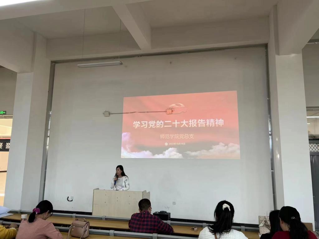 会上,师范学院党总支副书记任玉慧同志带领全体教师一起学习党的二十大报告,对报告的主题、十年来对党和人民事业具有重大现实意义和深远历史意义的三件大事、中国共产党的中心任务、必须牢牢把握的五个重大原则作出了解读,号召全党同志务必不忘初心、牢记使命,务必谦虚谨慎、艰苦奋斗,务必敢于斗争、善于斗争,坚定历史自信,增强历史主动,谱写新时代中国特色社会主义更加绚丽的华章。