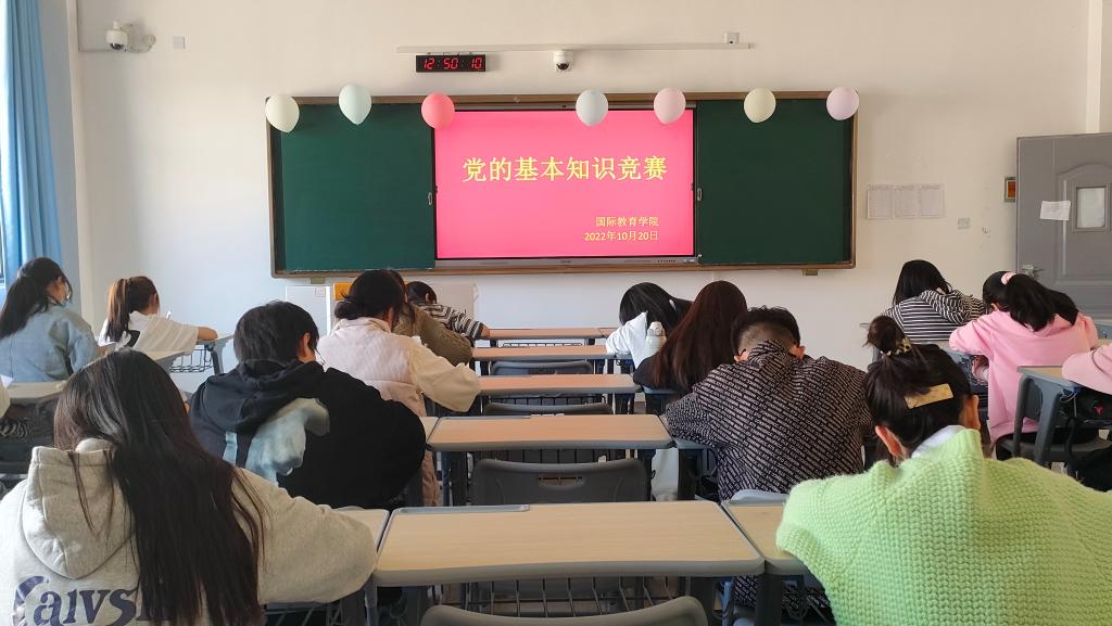 本站讯(国际教育学院 杨琨 学生记者 潘晓)为深入学习党的二十大精神,引导广大学生感党恩、听党话、跟党走,推动学生党建、思想政治工作和党史学习教育走深走实,根据国际教育学院党总支在大学生中开展党的基本知识教育活动工作安排,10月20日中午,国际教育学院在正心楼C202教室开展了党的基本知识竞赛。