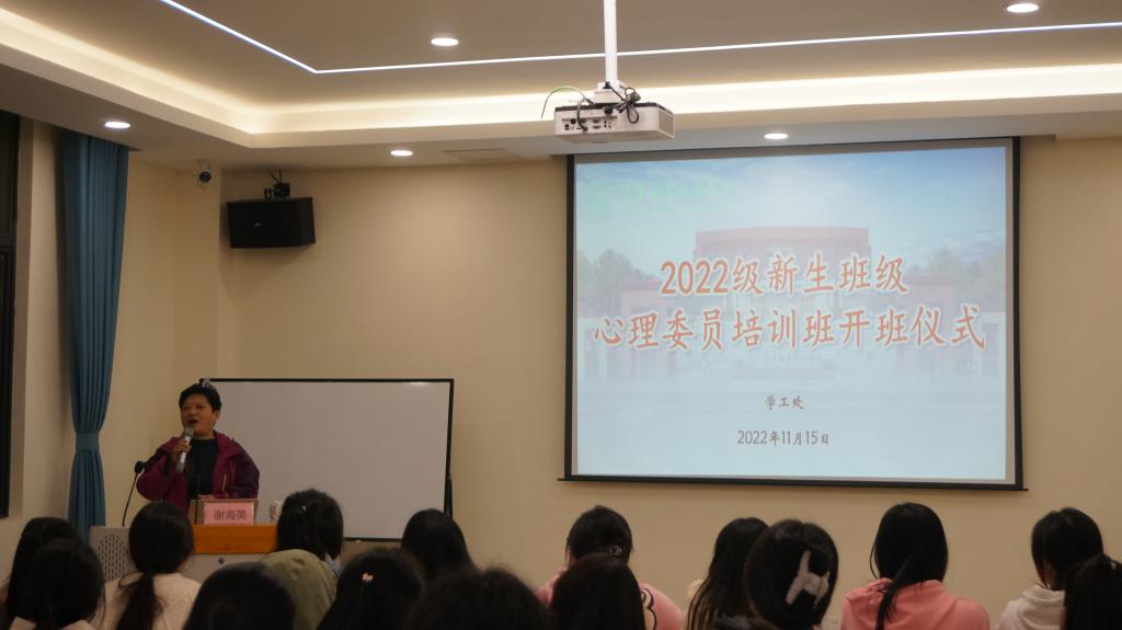 谢海英作开班讲话,她讲述了伟德官网心理健康教育中心的建设经过,并对新校区心理健康教育中心进行了介绍。她对心理委员提出几点要求:一要认真学习心理健康教育知识,用所学的知识去更好地帮助同学;二要学会观察,密切关注同学的心理动态,及时抓住心理异象,及时为同学们提供帮助;三要明确把握心理委员工作职责与要求所在,并将同学们的情况及时报告或反馈给辅导员,切实肩负起心理委员的责任,为同学的身心健康、为构建和谐平安校园贡献一份力量。