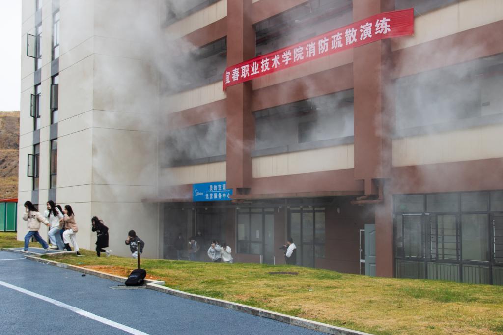当日下午4时,随着演练总指挥,校党委委员、宣传部长马天娥发出“演练开始”的号令,演练在急促的警报声中拉开序幕。308寝室瞬间冒出滚滚浓烟,副总指挥通知各小组按照分工立即进入战时状态,疏散组以班级为单位,分楼层、分方向、分区域按照规定路线,引导学生向宿舍楼疏散出口进行安全疏散,班主任辅导员组织学生靠右沿着消防楼梯向疏散出口行进。学生用湿毛巾捂住口鼻,弯腰低姿前行,从学生公寓有序快速撤离到后方操场。到达指定安全区域后,各班及时清点人数并上报疏散组负责人应到及实到人数,疏散组负责人向总指挥报告总人数。整个演练过程快速、安全、有序。