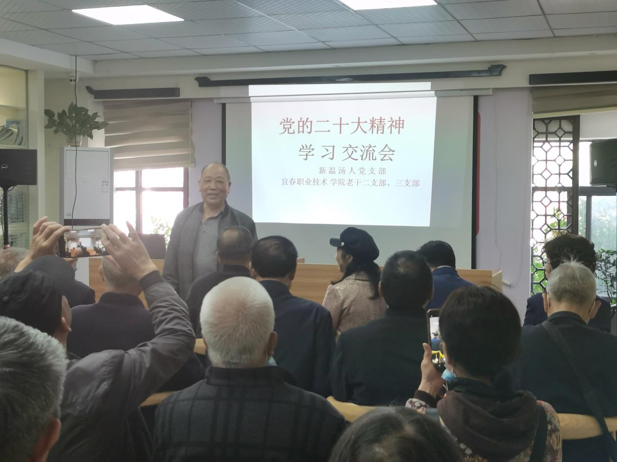 新温汤人党支部是由来自五湖四海旅居在温汤镇的离退休老干部党员组成,他们与当地老温汤人密切融合,对温汤经济发展作出了积极贡献,曾获宜春市委表彰的先进集体。在交流会上,新温汤人党支部党员介绍了在学习、文化、娱乐等方面的工作经验,互相交流了学习党的二十大的体会。通过交流进一步加深了对党的二十大的理解,决心把党的二十大精神转化为强大的精神动力,自觉地当好党的二十大精神的学习者、传播者和践行者。
