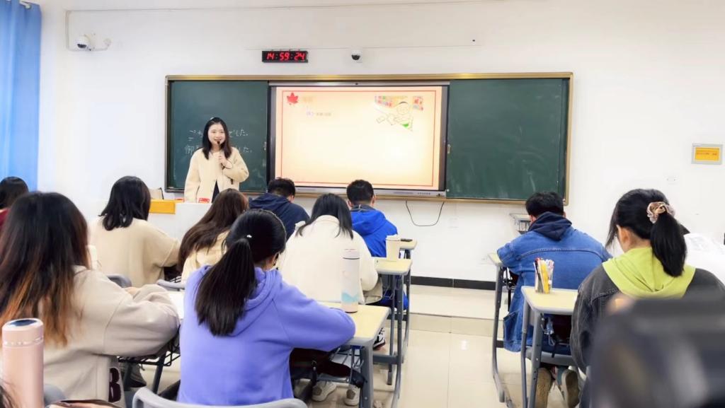 本次教学观摩公开课由国际教育学院应用英语教研室张源晴老师主讲,讲授课程为《日语》,授课内容为《新时代大学日语第一册》第五课。以“中日餐桌礼仪文化的差别”为课前热身,张源晴引导2022级英语本科班的同学们对不同国家文化差异进行思考,并通过学生自述自己所了解的中国礼仪文化,让同学们领悟社会主义核心价值观中文明的内涵及意义。课堂生动活泼,教学效果明显。