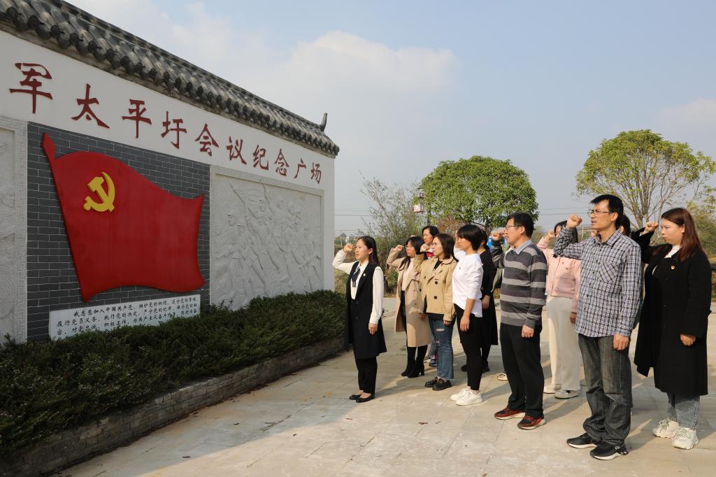 在太平村会议旧址纪念广场,支部书记彭慧洁带领全体党员重温了入党誓词,过政治生日并合影留念。党员教师蔡岚玢发表感想:“太平村的政治生日活动意义非凡。党旗下重温入党誓词,在接收党组织关爱的同时,更应时刻牢记作为共产党员的责任,把党性修养融入到日常生活和工作中。”党员教师黄斌军表示:“重温入党誓词,让我对共产党员的责任和义务有了更深层次的认识,今后我会继续用誓词对照自身言行,坚定马克思主义信仰,牢记使命和责任,加强学习,提高素质,争做优秀党员!”其他同志也纷纷表示,今后将不忘初心,牢记使命,一心向党,全心为民。