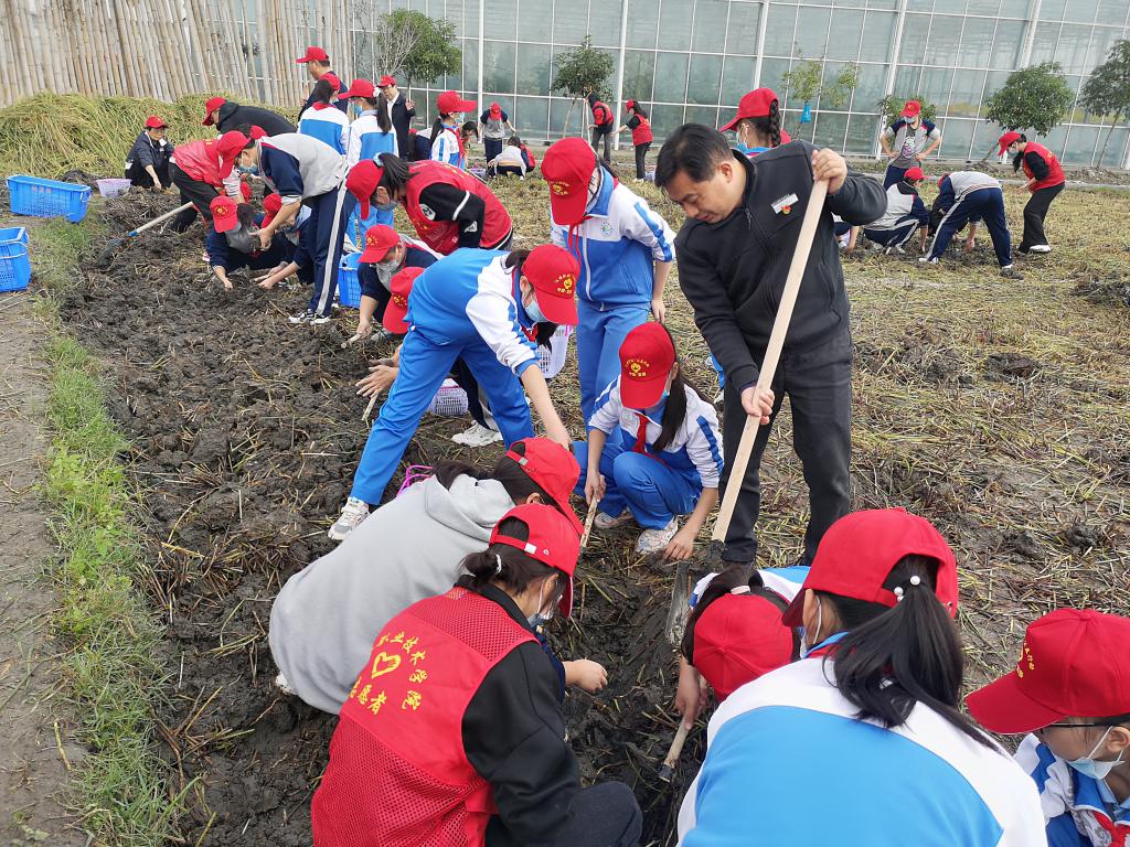 学生们乐此不疲地挖着荸荠,荸荠装满一筐又一筐,劳动中不时传来欢声笑语。活动结束后,学生们带着自己的劳动果实返回学校。大家纷纷表示,经过一个上午的辛勤劳作,增强了团队协作精神,磨练了意志力。