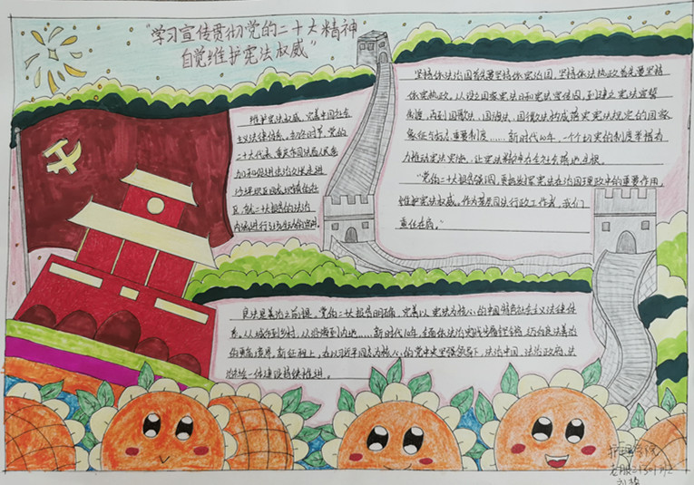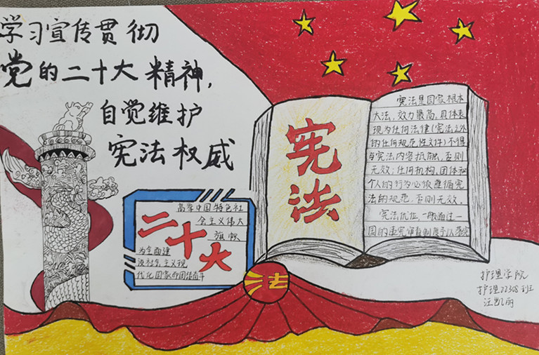 本站讯(护理学院 陈佳泠 钟舒淇)为学习宣传贯彻党的二十大精神,增强法治观念,弘扬宪法精神,12月5日,护理学院开展了“学习党的二十大精神 推动全面贯彻实施宪法”主题手抄报评比活动。