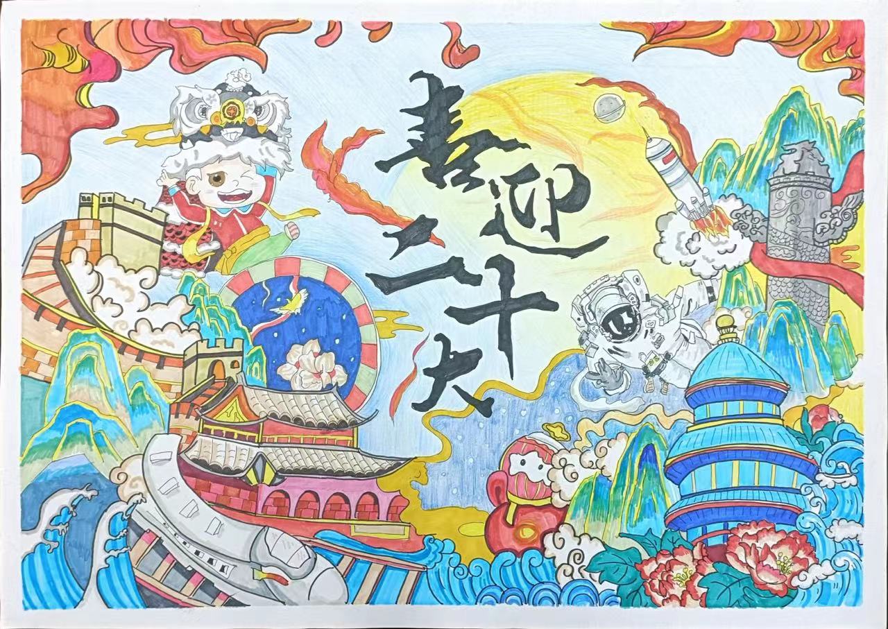 作品紧紧围绕“学习党的二十大精神”主题,用书法、画笔绘就未来美好蓝图。