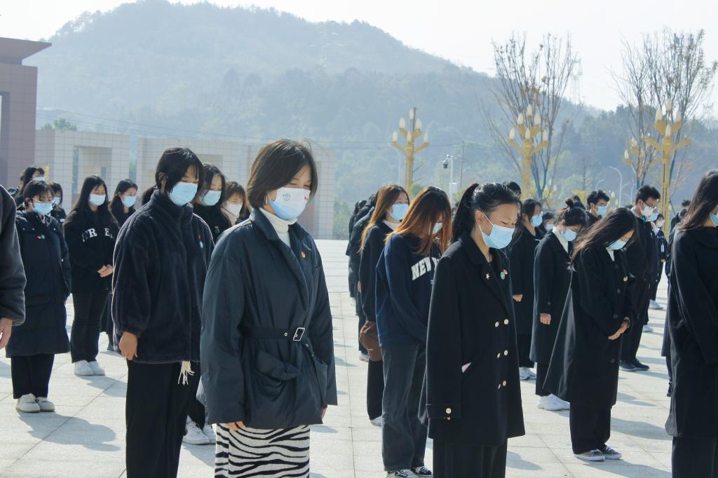 校学生会骨干欧阳葳宣读倡议书,倡导同学们牢记祖国的屈辱历史,积极响应国家科技兴国的号召。紧接着,同学们低头默哀一分钟,共同悼念遇难同胞,现场庄严肃穆。