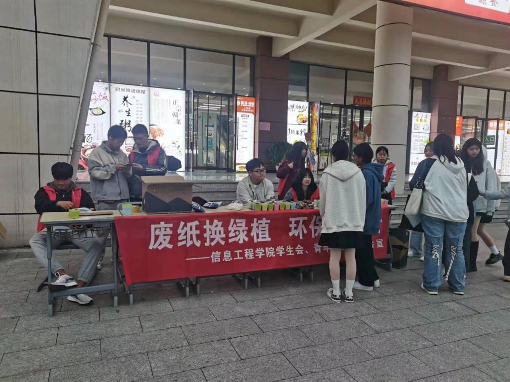 本站讯(信息工程学院 黄彪 学生记者 肖文鸿) 为传承雷锋志愿服务精神,践行为人民服务的宗旨,3月3日,在全民学习雷锋月到来之际,信息工程学院学生会携同青年志愿者协会在东区芳华园食堂门口举办“废纸换绿植,环保我先行”志愿活动。