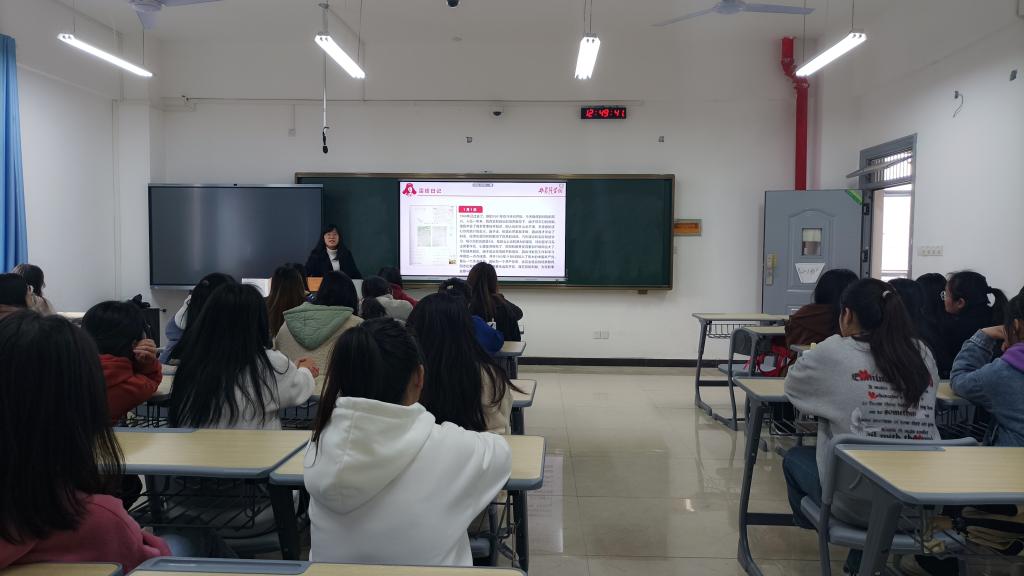 杨琨从学院3月学雷锋活动月所举办的一系列相关活动切入,用生动的课件为大家展示雷锋的生平经历,带领大家回顾这位22岁好人青年的点滴小事,并借由朗诵雷锋名言,为大家一一阐述雷锋精神的内涵,引导全体同学去学习雷锋在助人为乐中展现出的敬业精神、学习精神、团结精神、节约精神、“钉钉子”精神以及奉献精神。她指出,新时代青年处于继往开来的时代,肩负着传承中华传统美德与伟大精神的使命,雷锋是屹立不倒的精神楷模,雷锋精神穿越时光历久弥新、永不褪色,大家要大力传承弘扬雷锋精神,坚定信念,乐于奉献,服务于民,更要从小事做起,在生动实践中感悟“伟大出于平凡,一切为了社会主义建设,要发出青年的光和热”。