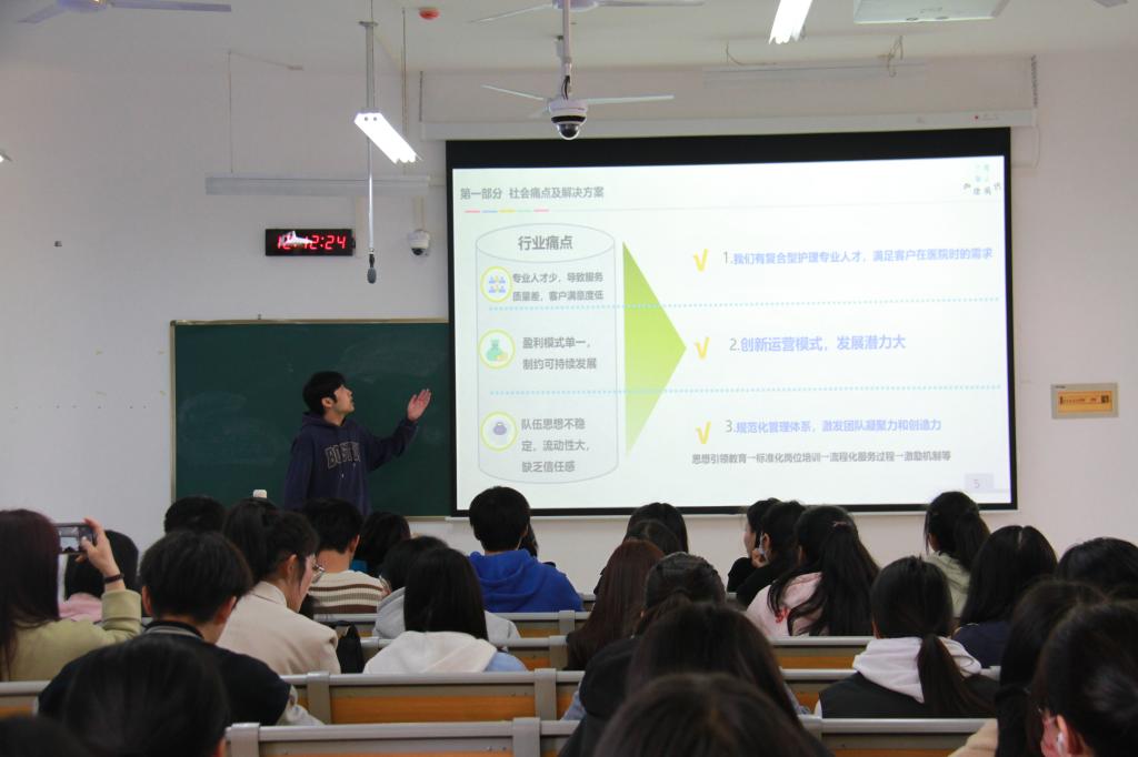 本站讯(护理学院 赖梦婷 黄伟)为引导大学生了解创业知识,提高创业能力,激发当代大学生的创业热情,4月7日,护理学院在和济楼C418举办“互联网+”创新创业大赛。党总支书记胡蓉、副书记曲晴及学工老师出席比赛并担任评委。