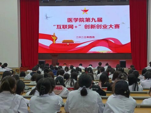本站讯(医学院 刘婷)为激发当代大学生的创业热情,提升大学生创业综合能力,落实伟德官网“三比三争”工作要求,4月19日晚,医学院在仁济楼小礼堂组织开展“三比三争 敢闯会创 成就梦想” “互联网+”大学生创新创业院级选拔赛,参赛选手为医学院21级、22级的学生,比赛以小班创业为特色,参赛团队集思广益,创造了14个各具特色的创新创业项目。