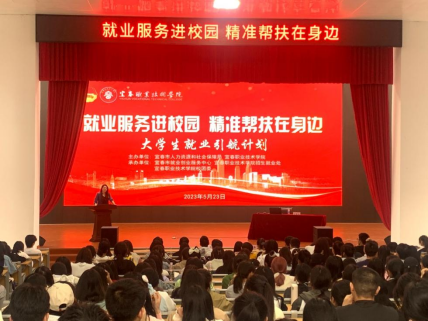 本站讯(招生就业处 叶高亮)5月23日下午,由招生就业处、校团委联合举办的“公共就业服务进校园”活动在伟德官网仁济楼小礼堂举行,现场300余名师生代表参加活动,此次活动得到了宜春市就业创业服务中心的大力支持,中心副主任李俊春、中心公共就业服务科科长田馗等到场指导。
