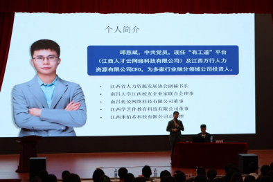 活动邀请到了江西省人力资源发展协会副秘书长邱慈斌,他以“HR视角看求职”为题,结合他的亲身经历分享了当前就业趋势,企业的人才标准,提升就业能力的途径等内容,为参会的师生上了一堂生动的就业指导课。