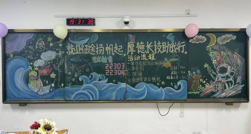 本站讯(艺术与设计学院 吴卿妍)为深入学习宣传贯彻党的二十大精神,深入推进学院大学生就业行动,引导广大学子树立正确的择业观和就业观,增强同学们对当下大学生升学与就业现状的认识,提高专业技能素养,6月13日晚,艺术与设计学院组织各班级开展“就业征途扬帆起,厚德长技助我行”主题团日活动。