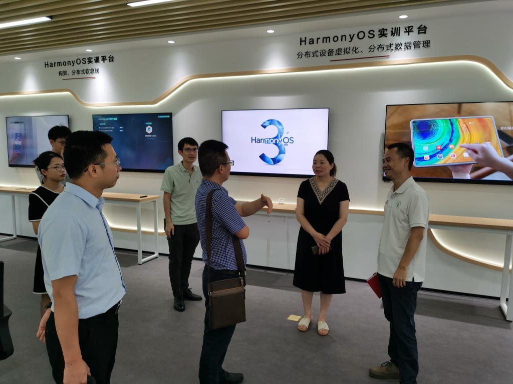 罗来曦代表学校对章立一行的到来表示热烈欢迎,带领大家参观了华为开发者创新中心及物联网实训室。