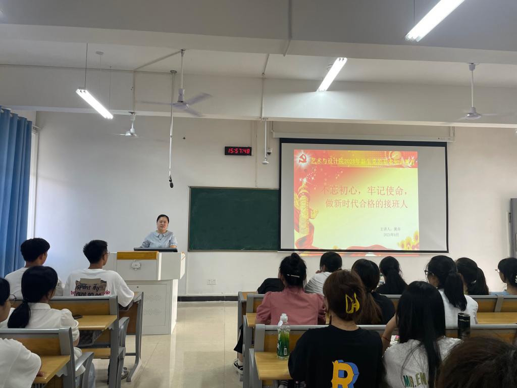 本站讯(艺术与设计学院 吴卿妍)为学习贯彻习近平新时代中国特色社会主义思想和党的二十大精神,引导广大学生感党恩、听党话、跟党走,成为坚定的马克思主义者,9月26日下午,艺术与设计学院在正心楼D408开展大学生党的基本知识专题讲座。此次课程由院长黄卉主讲,80余名学生代表到场学习。