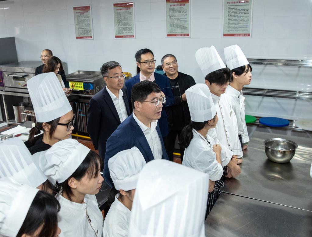 本站讯(经济管理学院 邓如星)10月27日,经济管理学院与江西几何体数字经济有限公司和深圳海年职业培训学校的“几何体电商双创实训基地”“海年烹饪双创实训基地”揭牌仪式分别在思创楼和思源楼顺利举行。参加人员有学校党委书记任军,党委副书记、校长邱军,副校长易滨秀,经管学院党总支书记邓晶、院长邓如星,江西几何体董事长姚青华、总经理文玉泽和江西海年餐饮管理服务有限公司总经理邬忠亮、副总经理邬明亮以及校企师生代表。仪式由易滨秀主持。