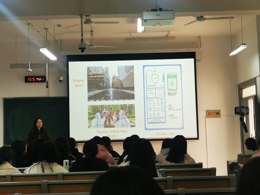 本次公开课由学院公共英语教研室彭琪玉老师主讲,讲授课程为《公共英语》。彭琪玉通过一段趣味脱口秀视频进行导入,调动学生积极性的同时,潜移默化地引入课程思政元素,紧扣主题,循循善诱,有效提升了学生的英语阅读水平和理解能力,帮助学生更好地树立人生观和价值观。