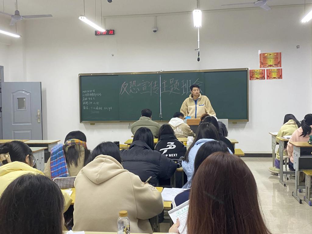本站讯(国际教育学院 郭学琪 王昭敏)为深入贯彻总体国家安全观,宣传《中华人民共和国反恐怖主义法》,切实增强在校学生反恐安全和自我防护意识,提高学生对突发事件的应急能力和自救避险能力,12月10日晚,国际教育学院在各班教室开展反恐普法宣传主题班会。会议由各班班主任主持,全院学生参与。