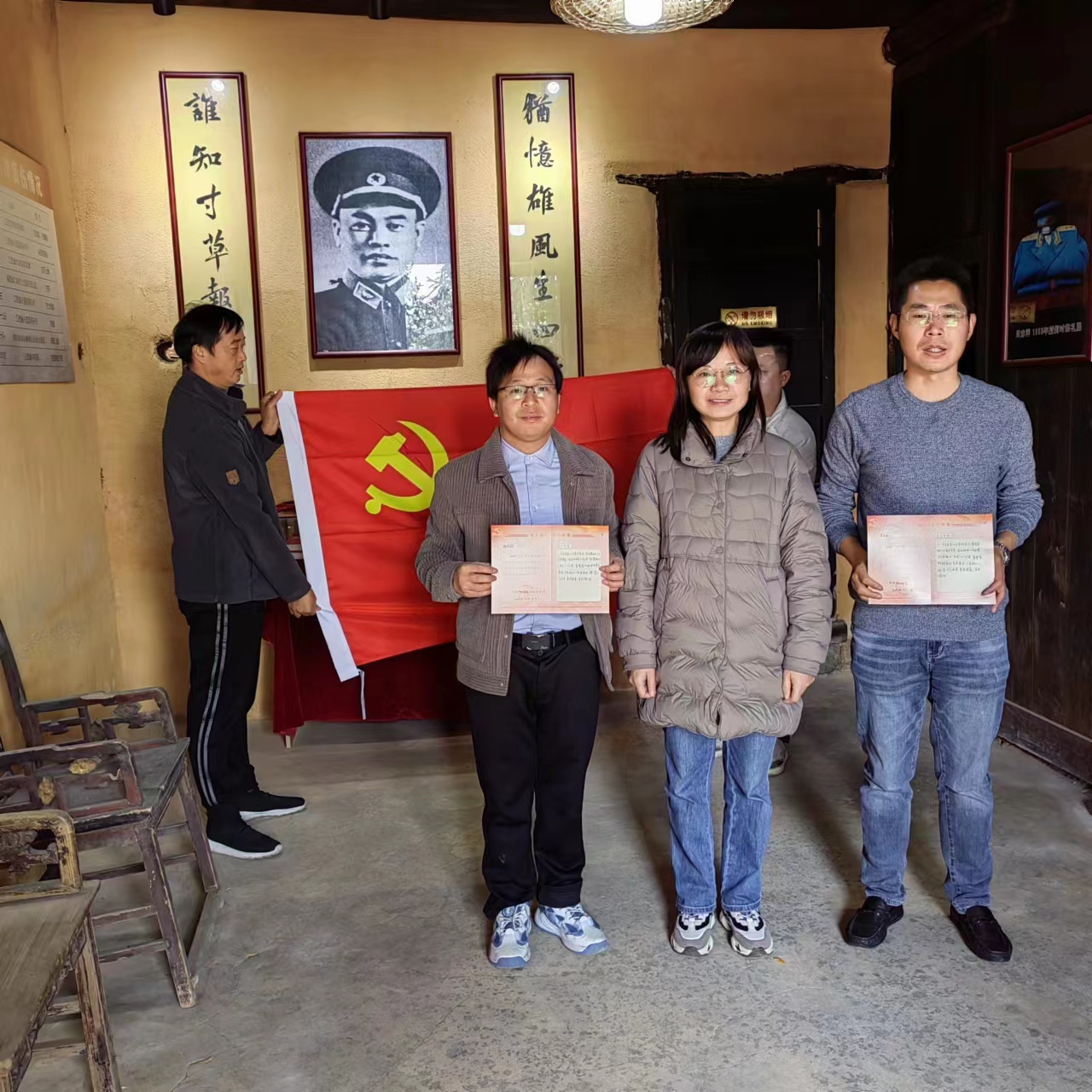 在周赤萍故居中,支部书记易开宇给过“政治生日”的李兵兵和钟志超颁发“政治生日”贺卡。随后,支部开展重温入党志愿书座谈会,每位党员都回顾和分享了自己入党时的情形,结合个人入党志愿书,畅谈思想和实际工作情况,锤炼了党性修养,筑牢了党性根基,不忘入党初心,不忘历史,牢记“为党育人,为国育才”的使命。