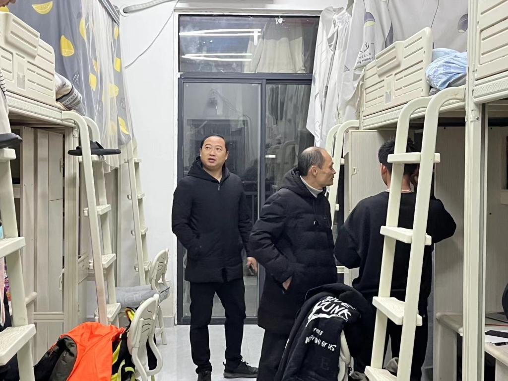 本站讯(艺术与设计学院 彭海艳)为确保学生在宿舍的生活环境安全无忧,学院积极响应学校的安全工作要求,12月17日晚,艺术与设计学院党总支书记罗平和副书记兰七荣带领各班班主任来到学生宿舍楼,开展宿舍安全隐患排查活动。此次活动旨在加强学生宿舍安全管理,提高学生的安全意识和紧急应对能力。
