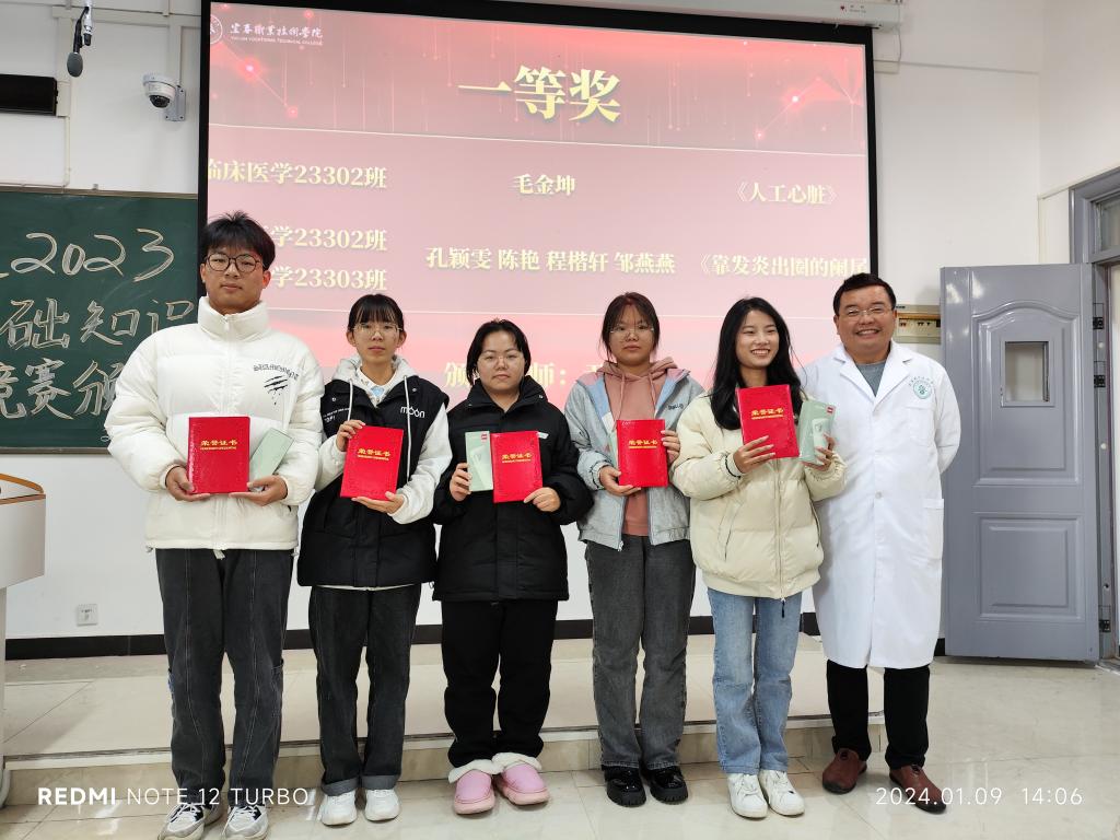 本站讯 (医学基础部 尹史帝)为践行以学生为中心的教学理念,推进基础医学教学改革,11月-12月,在医者初心人文社的协助下,医学基础部举办了医学基础知识与技能竞赛活动。1月9日下午,医学基础部在和济楼C304教室举行“收获2023——医学基础知识与技能竞赛颁奖大会”,医学基础部党支部全体党员和医学形态教研室所有教师参加。