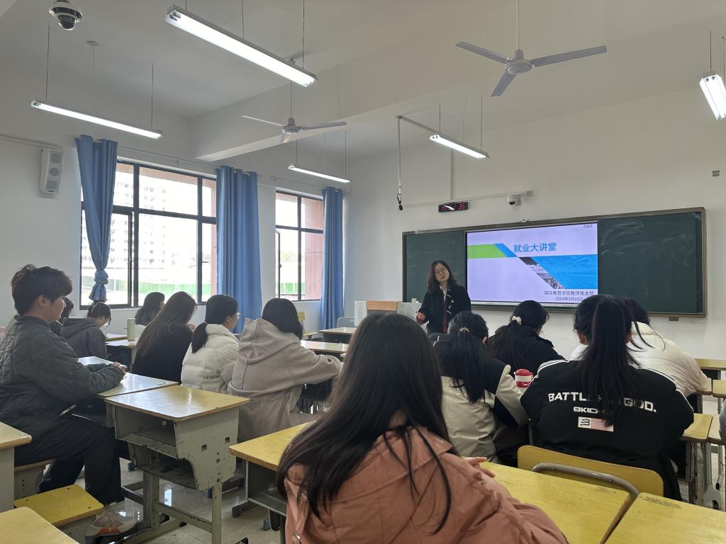 本站讯(国际教育学院 杜欣宇)为持续推进国际教育学院就业工作,帮助学生树立正确就业观、择业观,努力实现自己的学业目标,完成高质量就业,同时落实“支部联系班级,党员推进就业”的工作内容,3月20日下午,学院党总支书记刘海云和副院长杜欣宇代表院教师党支部,在博达楼B202 毕业班级展开了“就业大讲堂”支部联系班级主题活动。