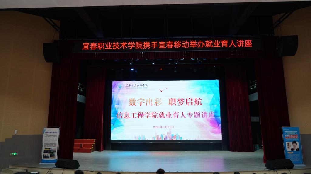 本站讯(信息工程学院 黄彪)为进一步强化就业育人建设,引导广大学子树立正确的就业观和择业观,3月21日,信息工程学院与中国移动江西宜春分公司在博达楼联合开展“数字出彩 职梦启航”就业育人专题讲座。此次讲座特邀袁州区公共就业人才服务局培训师刘梦薇主讲。副校长张印华,信息工程学院党总支书记罗来曦及学院2024届毕业生到场聆听。