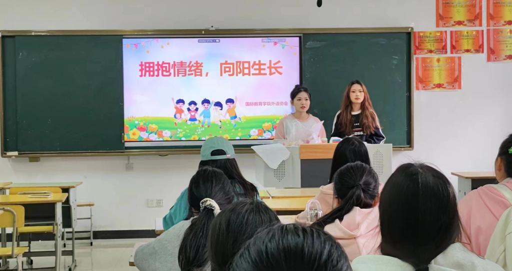 本站讯(国际教育学院 彭娟 学生记者 蒋煜锋)为帮助同学们缓解焦虑情绪,建立积极的心理状态,增强应对挑战的能力。4月23日,国际教育学院外语协会开展“拥抱情绪 向阳生长”心理主题活动。
