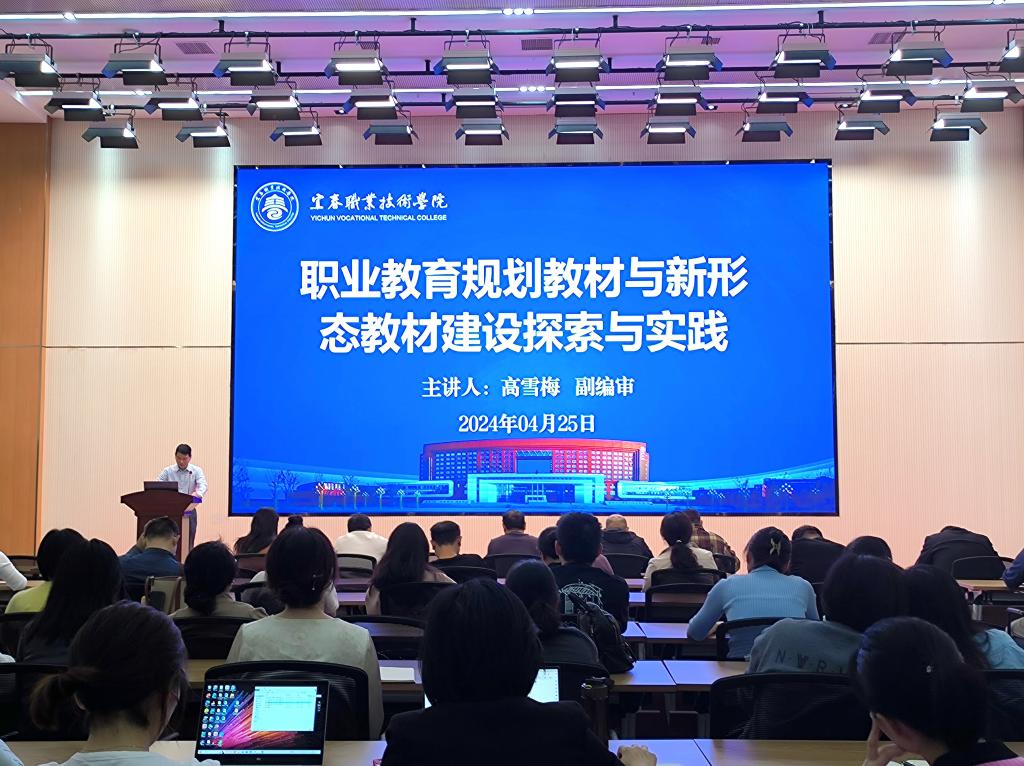 本站讯(教务处 刘恋)为助力伟德官网“十四五”第二批国家规划教材申报,推动新形态教材建设与应用,提升教师数字素养,4月25日下午,伟德官网邀请北京理工大学出版社机车分社副社长高雪梅副编审作为主讲嘉宾,在天工楼学术报告厅举行“职业教育规划教材与新形态教材建设探索与实践”主题讲座。讲座由教务处处长熊杰平主持,各院(部)分管教学领导、专业负责人及带头人、教研室主任、教材主编、精品在线开放课程负责人共60余人参加。